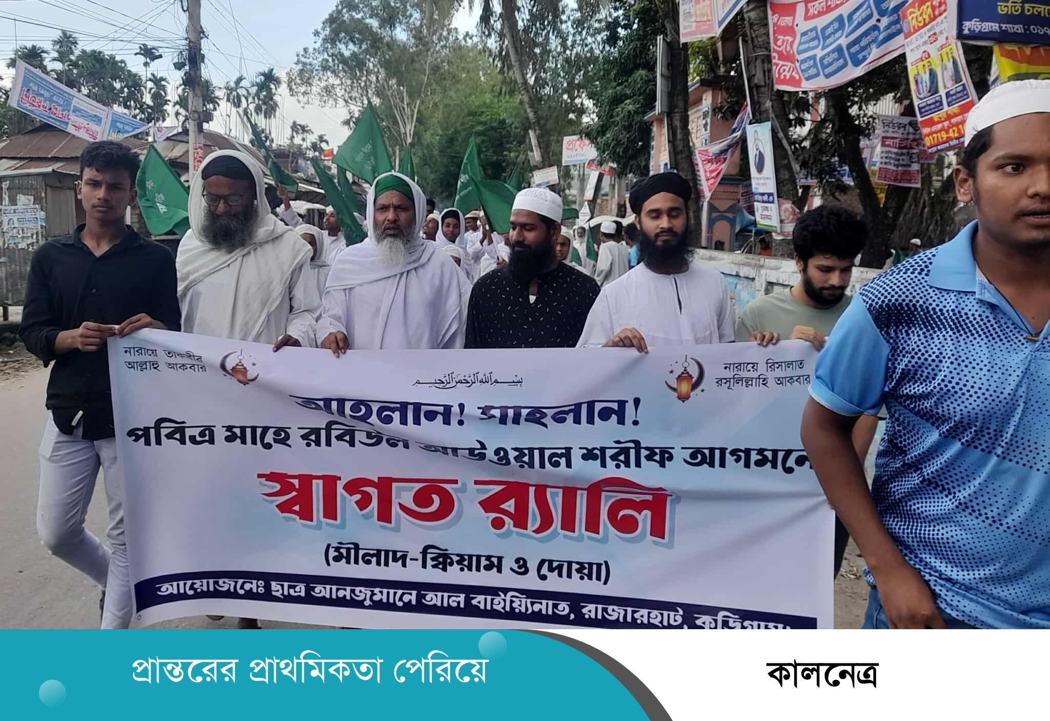 আজ সোমবার (২৫ আগস্ট) সকাল সাড়ে ১১টায় রাজারহাট সরকারি মীর ইসমাইল হোসেন কলেজ মাঠ থেকে র্যালিটি বের হয়। ব্যানার–প্ল্যাকার্ড হাতে নিয়ে অংশগ্রহণকারীরা রাসুলুল্লাহ (সা.)-এর প্রতি ভালোবাসা প্রকাশ করে বিভিন্ন শ্লোগান দেন। র্যালিটি বাজারের প্রধান সড়ক প্রদক্ষিণ শেষে সোনালী ব্যাংক চত্বরে গিয়ে শেষ হয়।
