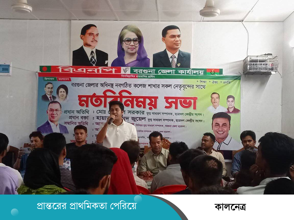 বরগুনা জেলা ছাত্রদলের অধীনস্থ কলেজ শাখার মতবিনিময় সভা, কেন্দ্রীয় নেতাদের উপস্থিতিতে প্রাণবন্ত আলোচনা