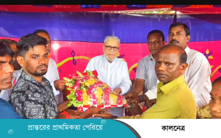 পূজা মণ্ডপে স্থানীয়রা তাঁকে উষ্ণ অভ্যর্থনা জানান।