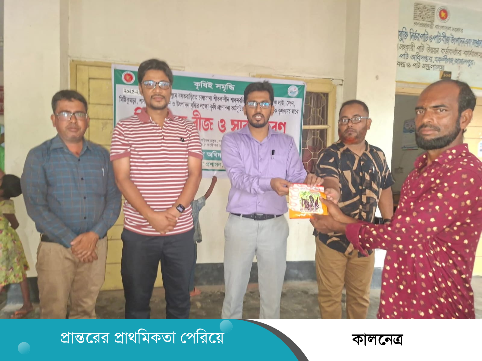উপজেলা কৃষি কর্মকর্তা আমিনুল ইসলাম জানান, প্রত্যেক কৃষককে বিনামূল্যে লাউ, বেগুন, শসা ও মিষ্টি কুমড়ার বীজের পাশাপাশি ১০ কেজি করে ডিএপি সার এবং ১০ কেজি করে এমওপি সার বিতরণ করা হয়েছে।