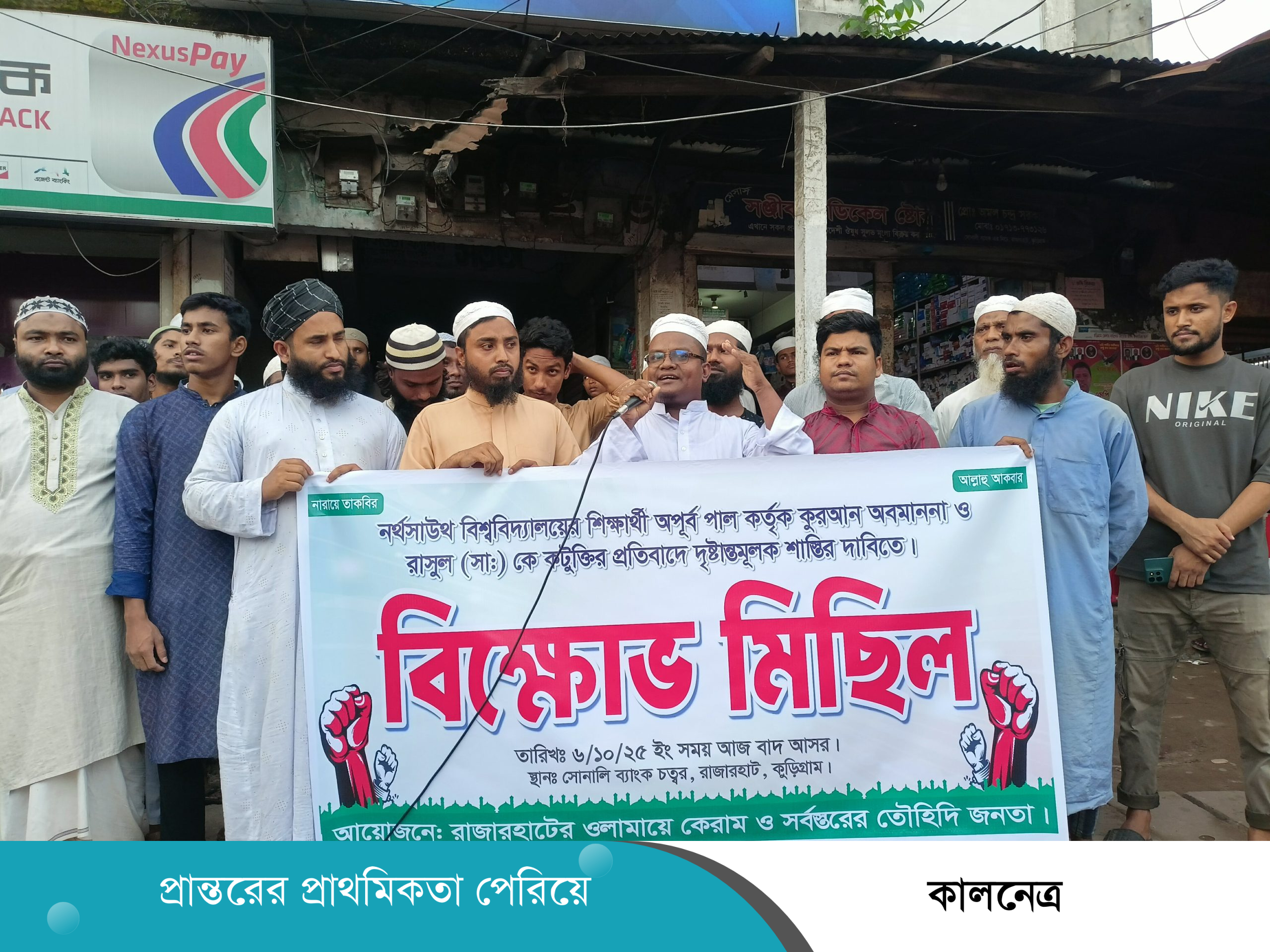 বিক্ষোভ কর্মসূচির আয়োজন করে রাজারহাটের ওলামায়ে কেরাম ও সর্বস্তরের তৌহিদী জনতা। মিছিল থেকে বক্তারা ধর্মীয় অনুভূতিতে আঘাত হানার মতো যেকোনো কাজের তীব্র নিন্দা জানান এবং সরকারের কাছে দ্রুততম সময়ের মধ্যে অভিযুক্তকে আইনের আওতায় এনে কঠোর শাস্তি নিশ্চিত করার দাবি জানান। তারা হুঁশিয়ারি দেন যে, যদি অবিলম্বে ব্যবস্থা না নেওয়া হয়, তবে ভবিষ্যতে আরও বৃহত্তর আন্দোলনের ডাক দেওয়া হবে।