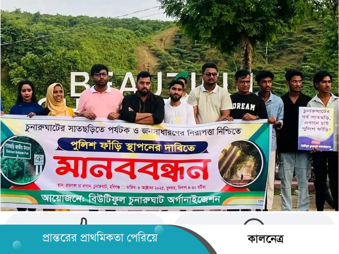 কালনেত্র প্রতিবেদক: আইন-শৃঙ্খলা রক্ষা এবং গণমানুষের নিরাপত্তার জন্য হবিগঞ্জের চুনারুঘাট উপজেলার সাতছড়ি জাতীয় উদ্যানে পুলিশ ফাঁড়ি স্থাপনের দাবি জানিয়েছেন "বিউটিফুল চুনারুঘাট অর্গেনাইজেশন" এর ব্যানারে চুনারুঘাটবাসী।