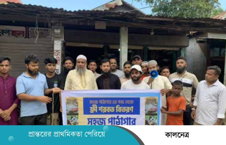 সহজ পাঠাগারের উদ্যোগে মার্কুলি বাজারে বিনামূল্যে শরবত বিতরণ
