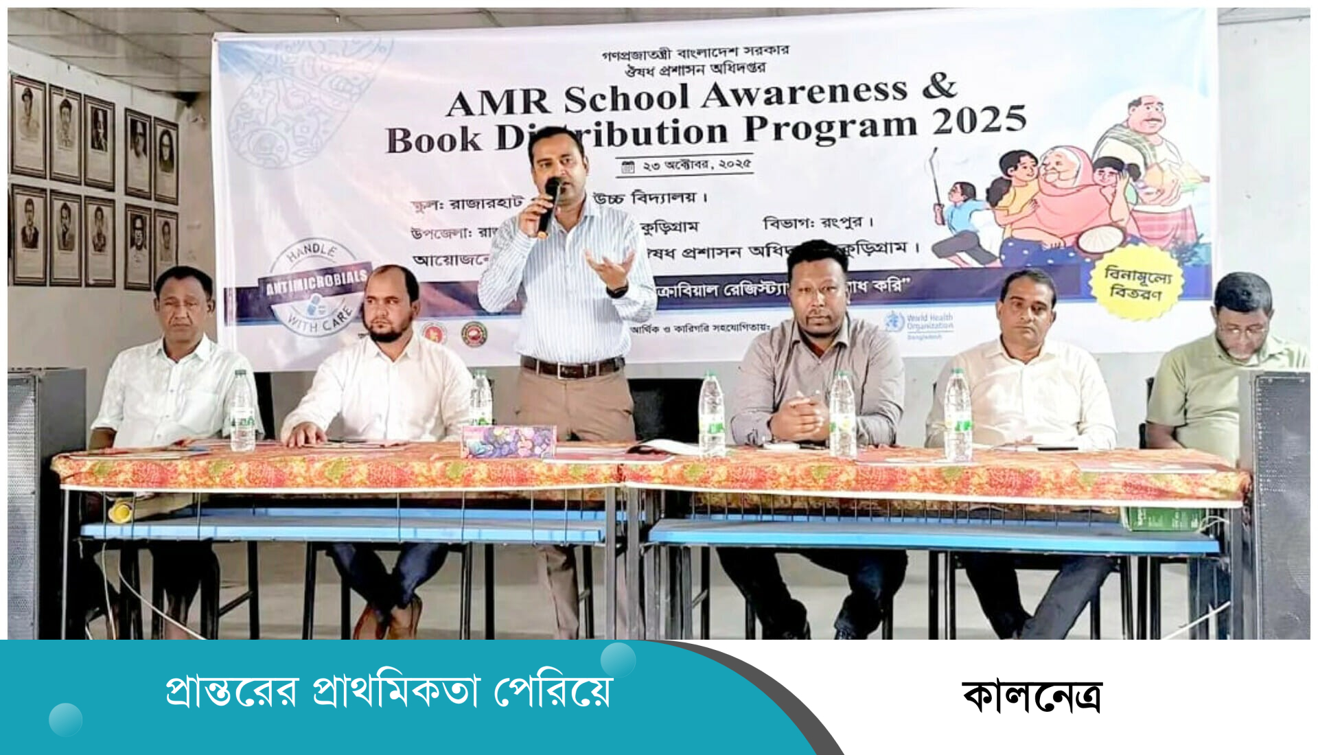 হাফিজুর রহমান, রাজারহাট প্রতিনিধিঃ বিশ্ব স্বাস্থ্য সংস্থার আর্থিক ও কারিগরি সহযোগিতায় বাংলাদেশ সরকারের ঔষধ প্রশাসন আয়োজনে মাধ্যমিক বিদ্যালয়ের শিক্ষার্থীদের মাঝে স্বাস্থ্য সচেতনতামুলক বই বিতরণ করা হয়েছে।
