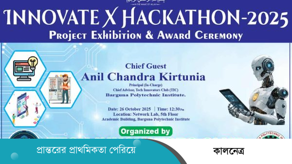 বরগুনা পলিটেকনিক ইনস্টিটিউটে আগামী ২৬ অক্টোবর ২০২৫, দুপুর ১২টা ৩০ মিনিটে শুরু হতে যাচ্ছে প্রযুক্তি উদ্ভাবন ও সৃজনশীলতার অন্যতম আয়োজন “INNOVATE X HACKATHON-2025”। এ আয়োজনে থাকবে Project Exhibition ও ...বিস্তারিত পড়ুন