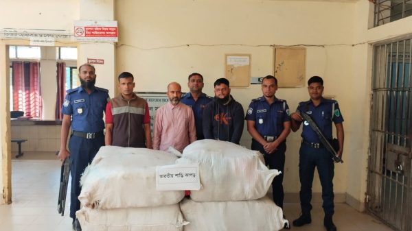 বাহুবলে অবৈধ পথে পাচারকালে ভারতীয় শাড়িসহ ৩ জন আটক