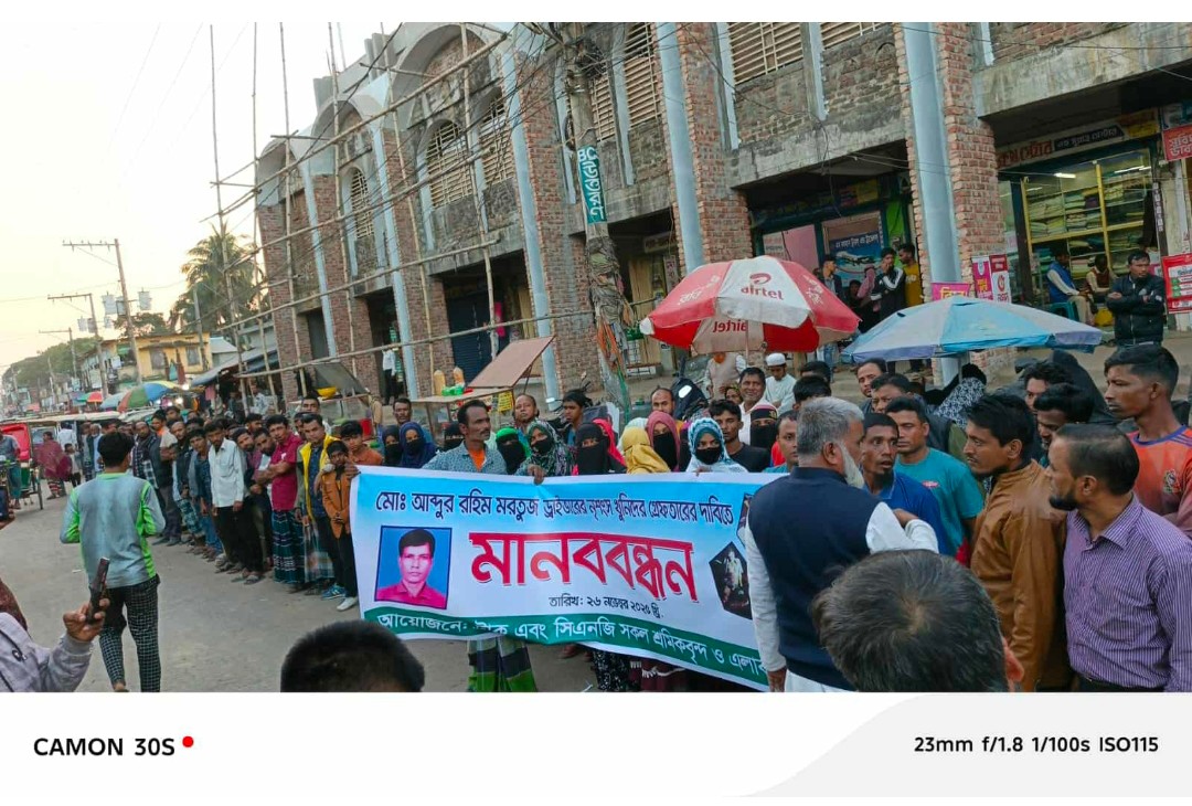 মানববন্ধনের সবচেয়ে হৃদয়বিদারক দৃশ্য দেখা যায় যখন নিহত মরতুজ ড্রাইভারের মেয়ে কান্নাজড়িত কণ্ঠে বলেন, “আমার বাবা ছিলেন আমাদের পরিবারের একমাত্র উপার্জনকারী। তাকে হত্যা করে আমাদের নিঃস্ব করে দেওয়া হয়েছে। আমরা বিচার চাই—বাবার খুনিদের ফাঁসি চাই।”