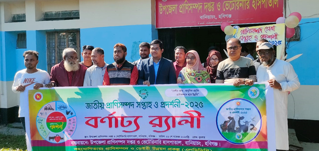এস এম খলিলুর রহমান রাজু ॥ বানিয়াচংয়ে জাতীয় প্রাণীসম্পদ সপ্তাহ-২০২৫ উপলক্ষে বর্ণাঢ্য র্যালি প্রদর্শনী ও আলোচনা সভা অনুষ্ঠিত হয়েছে। “দেশীয় জাত, আধুনিক প্রযুক্তি প্রাণিসম্পদে হবে উন্নতি” এই প্রতিপাদ্যে বুধবার (২৬ নভেম্বর) দুপুর ১২টায় উপজেলা প্রাণিসম্পদ ও ভেটেনারি হাসপাতাল প্রাঙ্গণে এ প্রদর্শনীর উদ্বোধন করেন বানিয়াচং উপজেলা নির্বাহী অফিসার (ইউএনও) মাহমুদা বেগম সাথী।