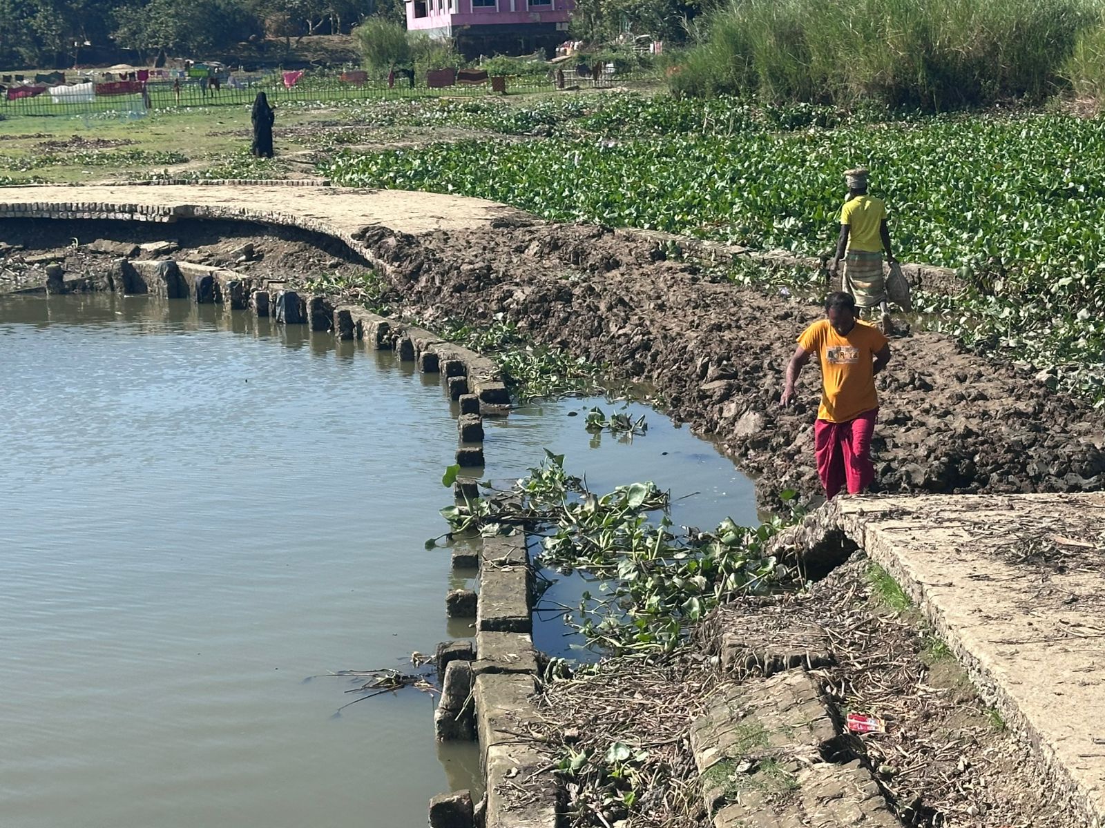 জনদুর্ভোগ কমাতে গ্রামের মানুষজন নিজ উদ্যোগে মাটি ভরাট কার্যক্রম চালিয়ে যাচ্ছেন।