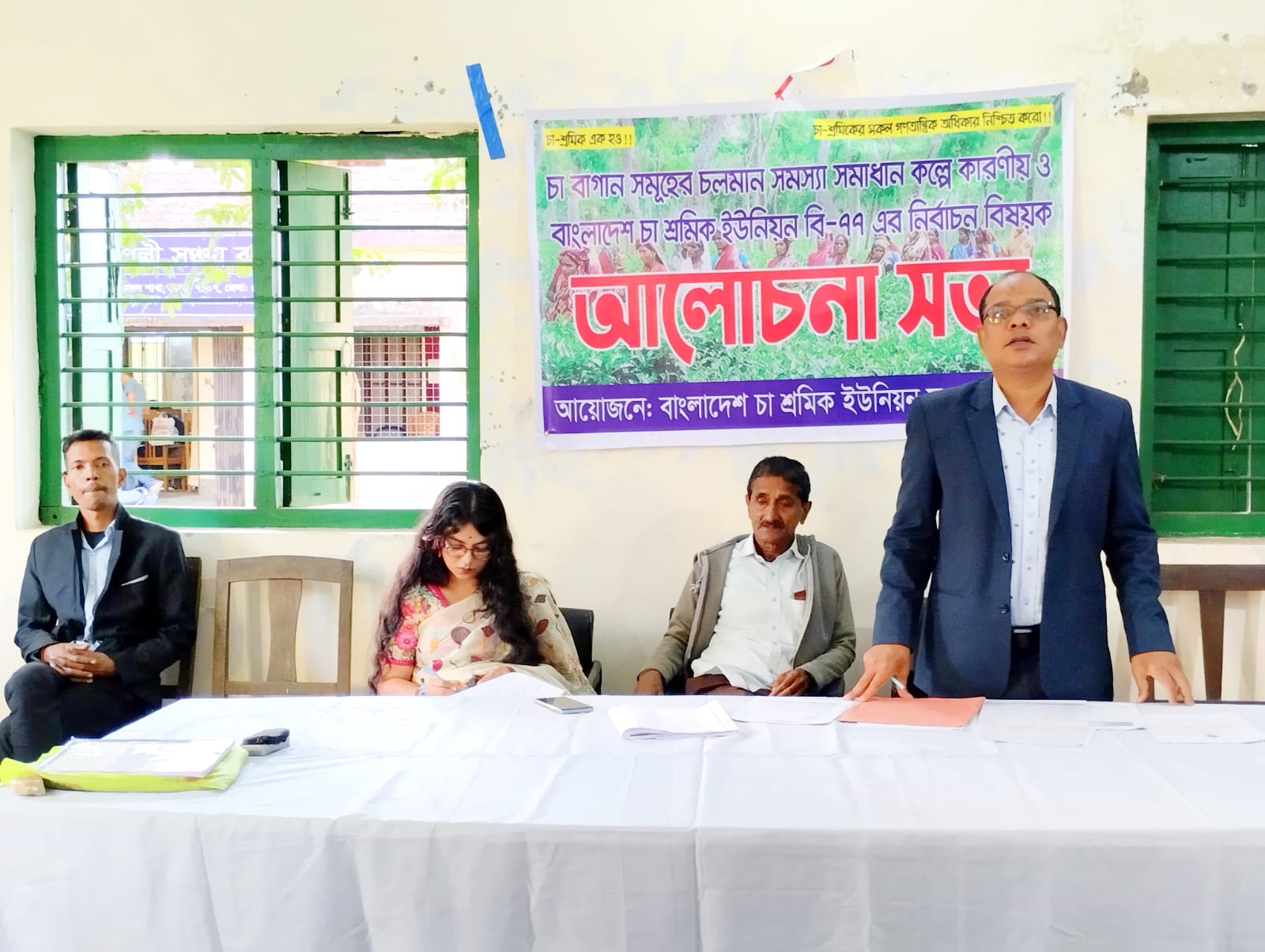 চা বাগান সমূহের চলমান সমস্যা সমাধান কল্পে করণীয় ও বাংলাদেশ চা শ্রমিক ইউনিয়ন বি-৭৭ এর নির্বাচন বিষয়ক শ্রীমঙ্গল উপজেলা পরিষদের বিডিআরআই অফিস হলরুমে দুপুর ১২'ঘটিকা হতে বিকাল ৩'ঘটিকা পর্যন্ত বাংলাদেশ চা শ্রমিক ইউনিয়ন সংস্কার কমিটির উদ্দ্যোগে আলোচনা সভার আয়োজন করেন।