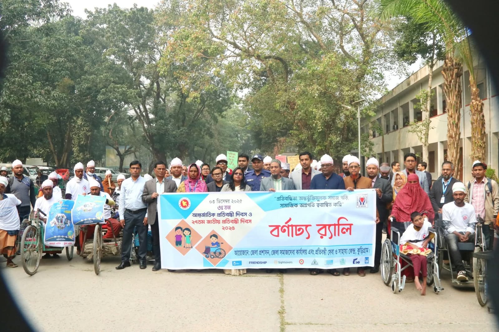 দিবসটির শুরুতে একটি বর্ণাঢ্য র্যালি কুড়িগ্রাম শহরের প্রধান সড়ক প্রদক্ষিণ করে। ছবিতে দেখা যায়, র্যালিতে প্রতিবন্ধী ব্যক্তিরা হুইলচেয়ারে অংশ নিয়েছেন এবং তাদের সাথে সংহতি জানিয়ে সরকারি কর্মকর্তা ও অন্যান্য অংশীজনরা ব্যানার বহন করে হেঁটে চলেছেন। ব্যানারে দিবসের মূল প্রতিপাদ্য ও আয়োজকদের নাম prominently displayed ছিল।