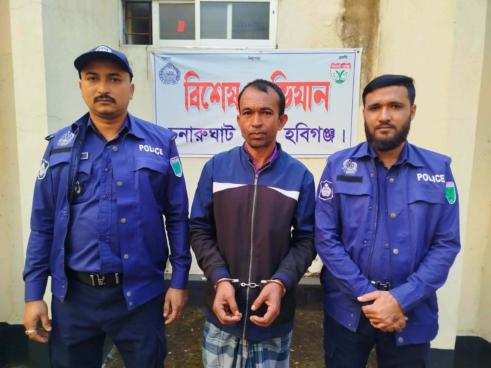 স্থানীয় জনতা রানীগাঁও বাজার থেকে শানু মিয়াকে আটক করে পুলিশকে খবর দেয়। ৬ ডিসেম্বর রাত সাড়ে ১১টার দিকে চুনারুঘাট থানার এসআই সজল চন্দ্র পাল সঙ্গীয় ফোর্স নিয়ে ঘটনাস্থলে গিয়ে শানু মিয়াকে গ্রেপ্তার করেন এবং উদ্ধার করা গরু দুটি জব্দ করেন।