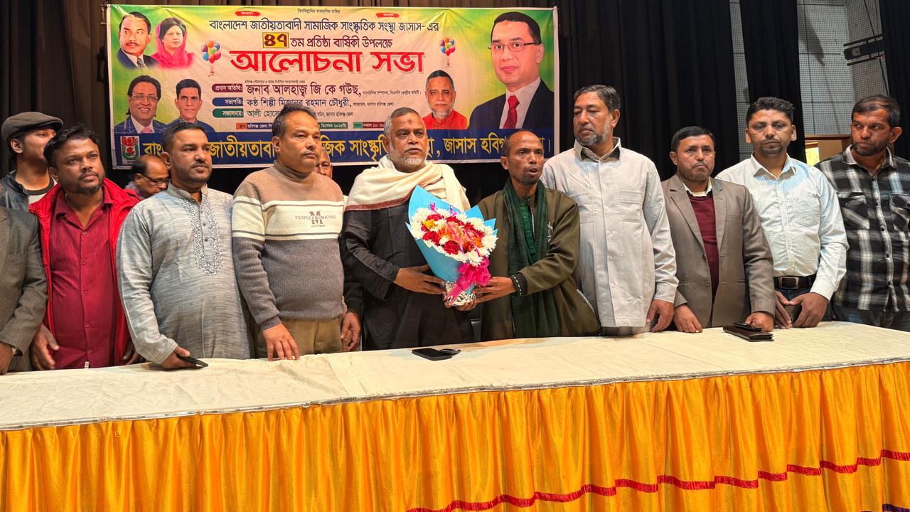 চৌধুরী তাওহীদ বিন আজাদ, হবিগঞ্জ : বাংলাদেশ জাতীয়তাবাদী সামাজিক সাংস্কৃতিক সংস্থা (জাসাস)-এর ৪৭তম প্রতিষ্ঠাবার্ষিকী উপলক্ষে গতকাল শনিবার (২৭ ডিসেম্বর) হবিগঞ্জে এক আলোচনা সভা ও সাংস্কৃতিক অনুষ্ঠানের আয়োজন করা হয়।
