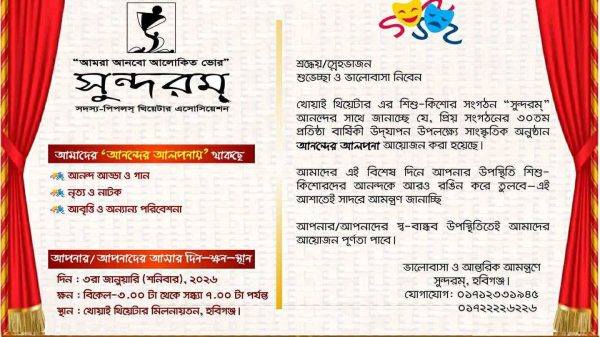 স্টাফ রিপোর্টার : নতুন বছরের প্রথম দিনেই হবিগঞ্জের চুনারুঘাটে ২০২৬ শিক্ষাবর্ষের বিনামূল্যে পাঠ্যপুস্তক বিতরণ কার্যক্রম শুরু হয়েছে। বৃহস্পতিবার (১ জানুয়ারি) সকালে চুনারুঘাট সদর সরকারি প্রাথমিক বিদ্যালয় প্রাঙ্গণে এ কর্মসূচির ...বিস্তারিত পড়ুন