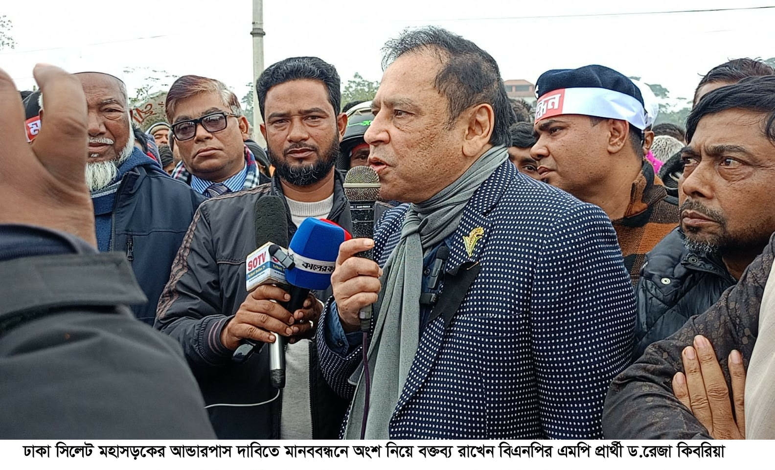 ১০টি গ্রামের সর্বস্তরের মানুষের উদ্যোগে সোমবার (৫ জানুয়ারি) সকাল ১১টায় আয়োজিত মানববন্ধনে সভাপতিত্ব করেন বিশিষ্ট মুরব্বি হাজী শানুর মিয়া। শ্রমিক নেতা রোমান মিয়া ও বদরুজ্জামান ছানুর যৌথ পরিচালনায় মানববন্ধনে বক্তব্য রাখেন বিএনপির সাংগঠনিক সম্পাদক আলহাজ্ব জি. কে. গউছ, হবিগঞ্জ-১ আসনে বিএনপির মনোনীত প্রার্থী বিশিষ্ট অর্থনীতিবিদ ড. রেজা কিবরিয়া, বাংলাদেশ জামায়াতে ইসলামীর মনোনীত প্রার্থী শাহজাহান আলী, নবীগঞ্জ উপজেলা বিএনপির সভাপতি মতিউর রহমান (পিয়ারা), সাবেক উপজেলা চেয়ারম্যান মুজিবুর রহমান শেফু, আউশকান্দি আর.পি. উচ্চ বিদ্যালয় অ্যান্ড কলেজের ভারপ্রাপ্ত অধ্যক্ষ ইকবাল বাহার তালুকদার, নবীগঞ্জ প্রেসক্লাবের সহ-সভাপতি শাহ সুলতান আহমেদসহ বিভিন্ন রাজনৈতিক, সামাজিক ও সাংবাদিক নেতৃবৃন্দ।