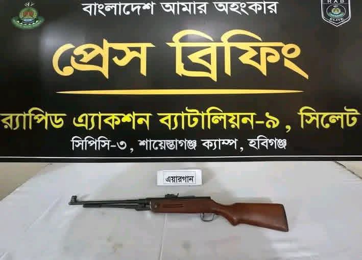 এরই ধারাবাহিকতায় র্যাব-৯ এর সিপিসি-৩, শায়স্তাগঞ্জ ক্যাম্প, হবিগঞ্জের একটি আভিযানিক দল বিশেষ অস্ত্র উদ্ধার অভিযান পরিচালনা করে। গোপন সংবাদের ভিত্তিতে জানা যায়, হবিগঞ্জ জেলার শায়স্তাগঞ্জ থানাধীন বড়চর এলাকার একটি আকাশমনি গাছের বাগানের ঝোপে একটি এয়ারগান পরিত্যক্ত অবস্থায় পড়ে রয়েছে।