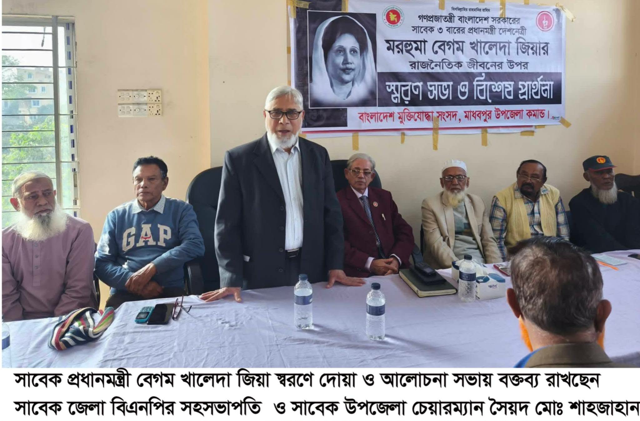 সোমবার সকালে মাধবপুর মুক্তিযোদ্ধা সংসদের উদ্যোগে মুক্তিযোদ্ধা কমপ্লেক্সে মিলনায়তনে কমান্ডার মোঃ ইদ্রিস আলী দুলা মিয়ার সভাপতিত্বে স্বরণ সভায় প্রধান অতিথির বক্তব্য রাখেন সাবেক জেলা বিএনপির সহসভাপতি ও সাবেক উপজেলা চেয়ারম্যান আলহাজ¦ সৈয়দ মোঃ শাহজাহান।