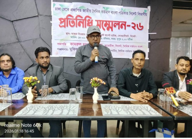 সিলেট ব্যুরো :: মাঠপর্যায়ের প্রতিনিধিদের আরও সক্রিয় ভূমিকা পালনের আহ্বান জানানো হয়েছে দৈনিক বর্তমান বাংলা পত্রিকার সিলেট বিভাগীয় প্রতিনিধি সম্মেলনে। রোববার (১৮ জানুয়ারি) বিকাল ৩টায় সিলেট নগরীর সোবহানীঘাট আঙ্গুরা টাওয়ারের দি সিলেট বাপেট হাউজে অনুষ্ঠিত সম্মেলনে প্রধান অতিথির বক্তব্যে দৈনিক বর্তমান বাংলার মফস্বল সম্পাদক সিরাজুল মনির বলেন, মাঠপর্যায়ের প্রতিনিধিরাই একটি পত্রিকার প্রাণ। বস্তুনিষ্ঠ সংবাদ, অনুসন্ধানী প্রতিবেদন ও নৈতিক সাংবাদিকতার মাধ্যমে বর্তমান বাংলাকে দেশব্যাপী আরও শক্ত অবস্থানে নিতে হবে।