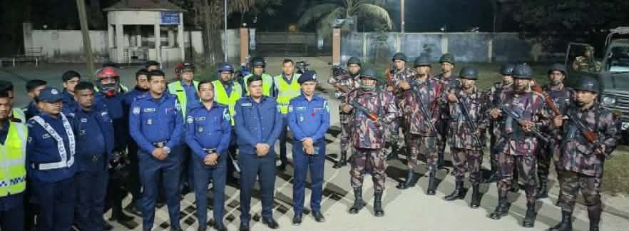 শনিবার (৩১ জানুয়ারি) রাতে উপজেলার গুরুত্বপূর্ণ সড়ক ও জনসমাগমপূর্ণ এলাকায় এ মহড়া পরিচালনা করা হয়।
