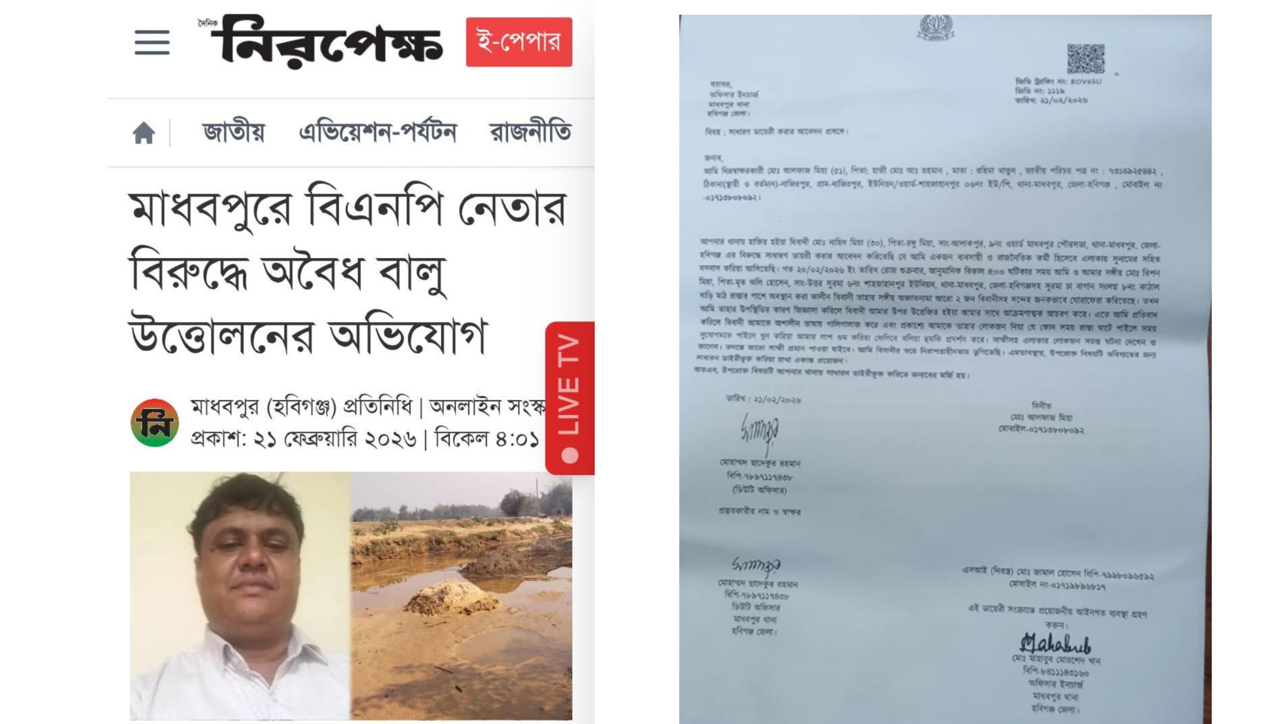 মাধবপুর প্রতিনিধি: হবিগঞ্জের মাধবপুরে সীমনা নদী থেকে কোটি টাকার সিলিকা বালু লুটের অভিযোগে সংবাদ প্রকাশের পর সাংবাদিক নাহিদ মিয়ার বিরুদ্ধে সাধারণ ডায়েরি (জিডি) দায়েরের ঘটনায় নতুন করে উত্তেজনা দেখা দিয়েছে। ঘটনাটি ঘিরে উপজেলা জুড়ে আলোচনা-সমালোচনার সৃষ্টি হয়েছে। স্থানীয় সূত্রে জানা গেছে, শাহজাহানপুর ইউনিয়নের সীমনা ছড়া থেকে দীর্ঘদিন ধরে আলফাজ মিয়া মহালদার এর নেতৃত্বে একটি প্রভাবশালী সিন্ডিকেট গভীর রাতে ট্রাকভর্তি করে সিলিকা বালু উত্তোলন ও পাচার করে আসছে। এলাকাবাসীর দাবি, প্রশাসনের নজরদারির মধ্যেও রাত ১২টার পর থেকে ভোর পর্যন্ত এ কার্যক্রম চলে আসছে। বিষয়টি নিয়ে অনুসন্ধানী প্রতিবেদন প্রকাশ করেন দৈনিক নিরপেক্ষ পত্রিকার প্রতিনিধি ও মাধবপুর উপজেলা প্রেসক্লাবের যুগ্ম সাধারণ সম্পাদক নাহিদ মিয়া।