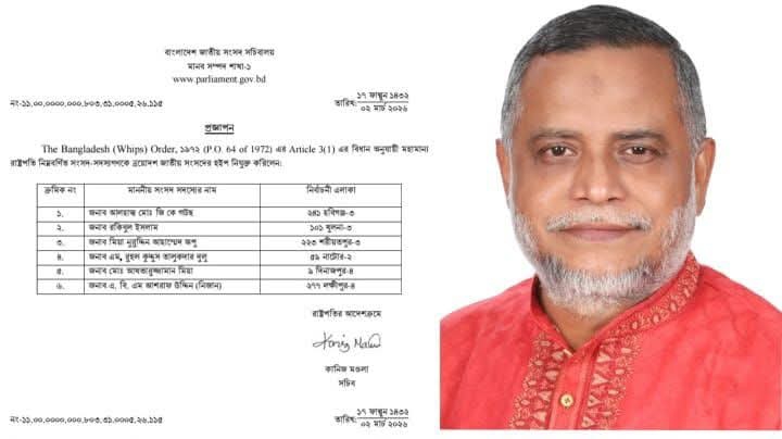 জাতীয় সংসদের হুইপ হিসেবে তিনি সংসদের কার্যক্রম সুষ্ঠুভাবে পরিচালনায় গুরুত্বপূর্ণ ভূমিকা পালন করবেন। দলীয় শৃঙ্খলা রক্ষা, সংসদে সদস্যদের উপস্থিতি নিশ্চিত করা, আইন প্রণয়ন কার্যক্রমে সমন্বয় সাধনসহ সংশ্লিষ্ট দায়িত্ব পালন করবেন তিনি।