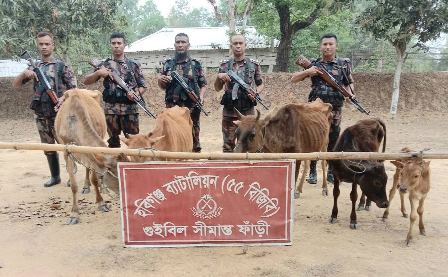 এছাড়াও পৃথক আরেকটি বিশেষ অভিযানে গুইবিল বিওপির দায়িত্বপূর্ণ এলাকার গুইবিল নামক স্থানে গত ০৯ মার্চ ২০২৬ তারিখ বেলা ১২ টার সময় চোরাকারবারীরা ভারত হতে ০৫ টি গরু নিয়ে আসে। সুবিধামত সময়ে পাচারের উদ্দেশ্যে গরুগুলো জঙ্গলের ভেতর লুকিয়ে রাখে। পরবর্তীতে গুইবিল বিওপির টহলদল অভিযান পরিচালনা করে উক্ত গরু গুলো মালিকবিহীন অবস্থায় জব্দ করতে সক্ষম হয়।