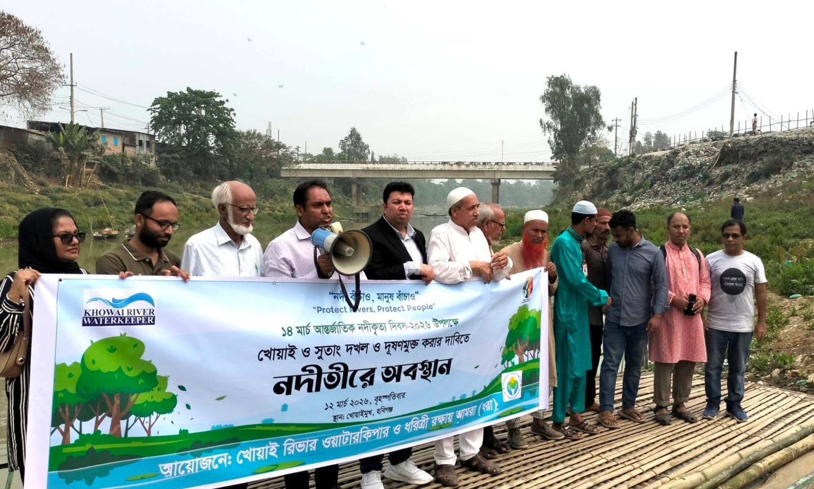 খোয়াই রিভার ওয়াটারকিপার ও ধরিত্রী রক্ষায় আমরা (ধরা)-এর আয়োজনে অনুষ্ঠিত এ কর্মসূচিতে স্থানীয় পরিবেশপ্রেমী, সচেতন নাগরিক ও বিভিন্ন শ্রেণি-পেশার মানুষ অংশগ্রহণ করেন।