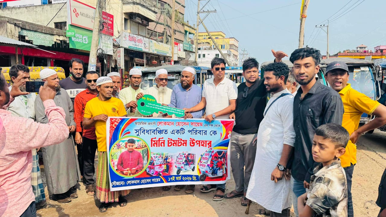 জানা যায়, উপহারপ্রাপ্ত পরিবারটি দীর্ঘদিন ধরে আর্থিক সংকটে ভুগছিল। পরিবারের উপার্জনের স্থায়ী কোনো ব্যবস্থা না থাকায় মানবেতর জীবনযাপন করছিল তারা। বিষয়টি জানতে পেরে প্রবাসী লোকমান হোসেন সায়েম মানবিক সহায়তার হাত বাড়িয়ে দেন। জীবিকা নির্বাহের স্থায়ী ব্যবস্থা নিশ্চিত করতেই তিনি মিনি টমটম উপহার দেন, যাতে পরিবারটি স্বাবলম্বী হয়ে উঠতে পারে।