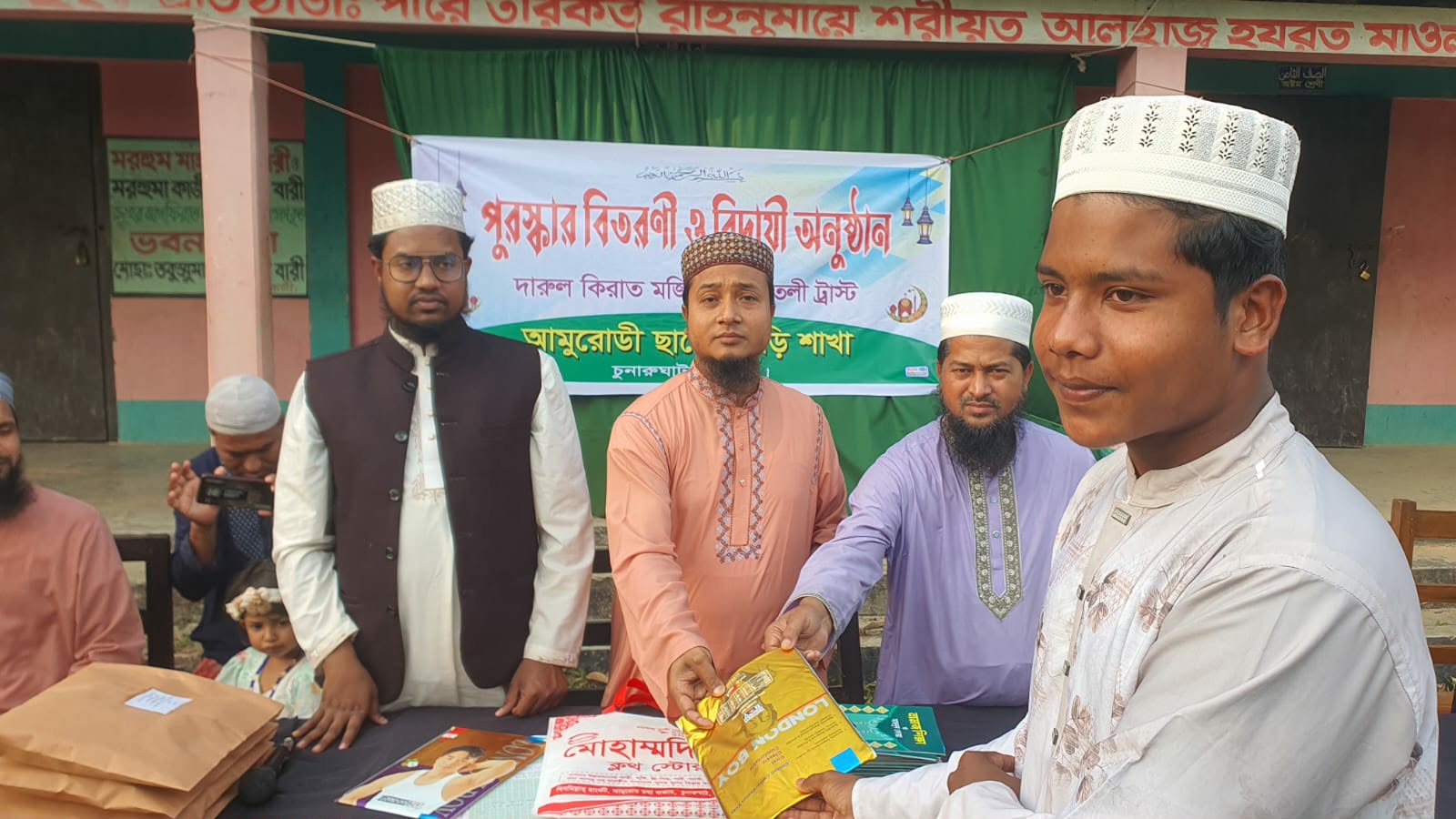 অনুষ্ঠানে কিরাত, তাজবীদ ও গজল বিষয়ে প্রতিযোগিতা ও পরিক্ষায় উত্তীর্ন বিভিন্ন জামাতের শিক্ষার্থীদের মাঝে পুরস্কার প্রদান করেন অতিথিবৃন্দ।